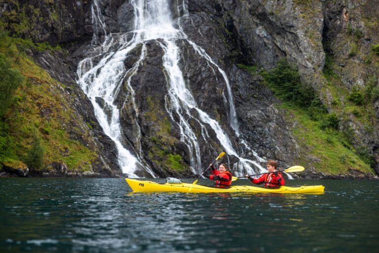 Opte pour le parcours accessible de Nærøy ou repousse tes limites avec le parcours plus long d'Aurland. Comme toutes les randonnées sont facultatives, tu décides sur place comment tu souhaites explorer les fjords norvégiens. Ainsi, tu peux vivre l'aventure depuis l'eau et d'en haut, exactement comme tu le souhaites.